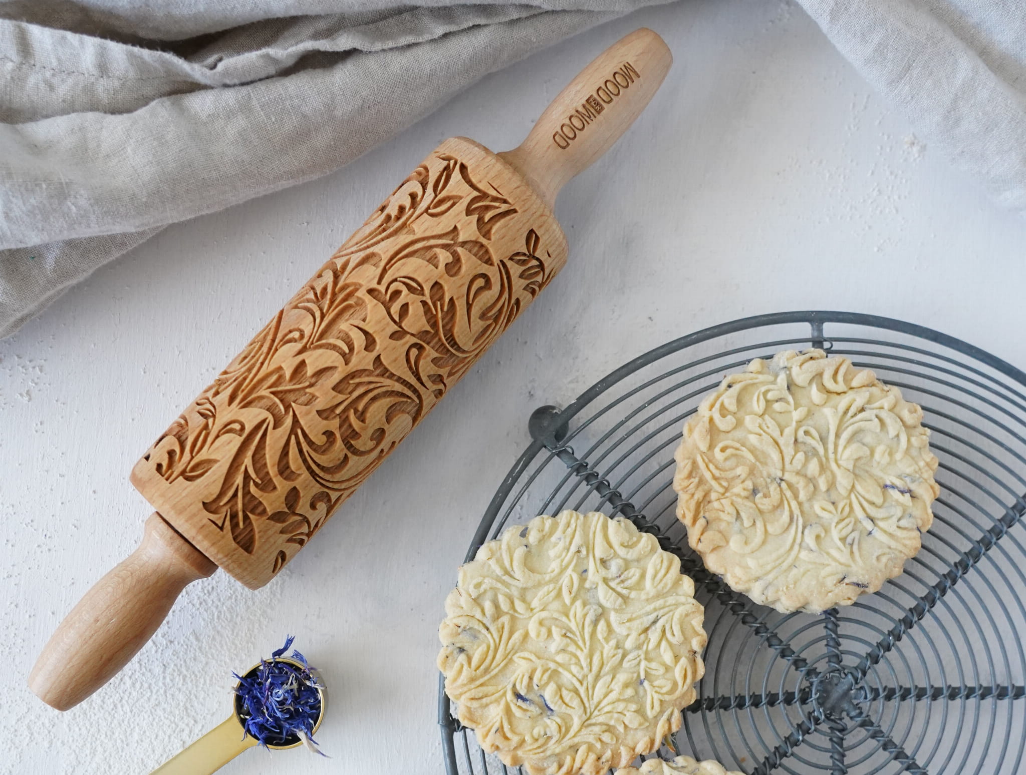 Each MoodForWood laser engraved rolling pin is made of beech wood. It has the optimal engraving depth to obtain the best extrusion results on dough and even clay. Each roller is covered with oil approved for direct contact with food. It protects the wood and makes it easier to apply patterns, because the dough does not stick so easily to the surface of the roller. At MoodForWood you can buy a rolling pin with a very good price-quality ratio. We also take care of short production times and the fastest and cheapest delivery. All of our rollers are approved for contact with food. To each purchased item we add our proven recipe for shortbread cookies with a pattern and useful roller care tips. The MoodForWood rolling pin is a perfect gift for: birthday, name day, Wedding, Mother's Day, Father's Day, and also for anyone interested in baking.