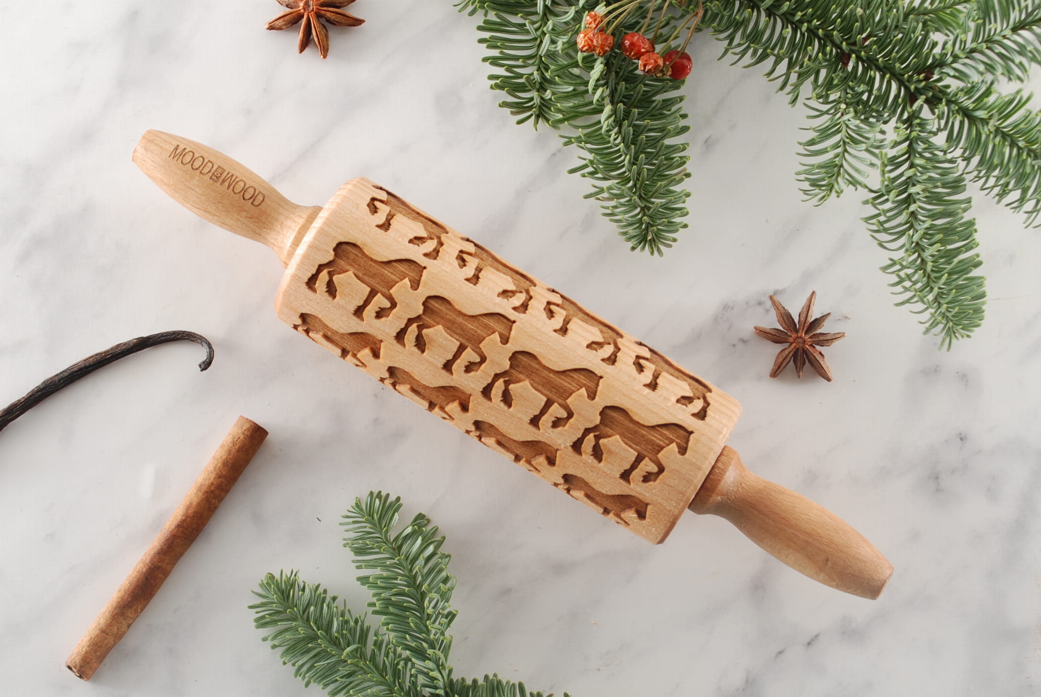 Each MoodForWood laser engraved rolling pin is made of beech wood. It has the optimal engraving depth to obtain the best extrusion results on dough and even clay. Each roller is covered with oil approved for direct contact with food. It protects the wood and makes it easier to apply patterns, because the dough does not stick so easily to the surface of the roller. At MoodForWood you can buy a rolling pin with a very good price-quality ratio. We also take care of short production times and the fastest and cheapest delivery. All of our rollers are approved for contact with food. To each purchased item we add our proven recipe for shortbread cookies with a pattern and useful roller care tips. The MoodForWood rolling pin is a perfect gift for: birthday, name day, Wedding, Mother's Day, Father's Day, and also for anyone interested in baking.