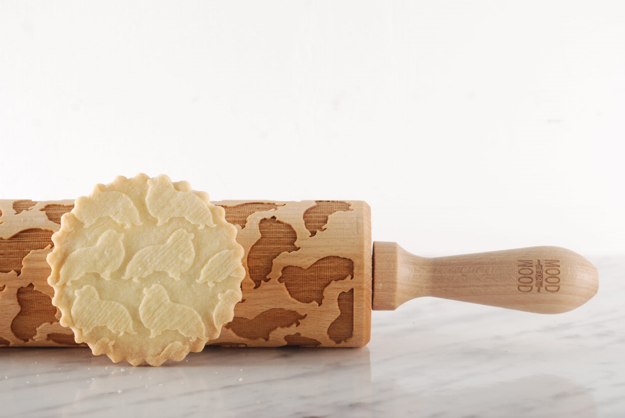 Each MoodForWood laser engraved rolling pin is made of beech wood. It has the optimal engraving depth to obtain the best extrusion results on dough and even clay. Each roller is covered with oil approved for direct contact with food. It protects the wood and makes it easier to apply patterns, because the dough does not stick so easily to the surface of the roller. At MoodForWood you can buy a rolling pin with a very good price-quality ratio. We also take care of short production times and the fastest and cheapest delivery. All of our rollers are approved for contact with food. To each purchased item we add our proven recipe for shortbread cookies with a pattern and useful roller care tips. The MoodForWood rolling pin is a perfect gift for: birthday, name day, Wedding, Mother's Day, Father's Day, and also for anyone interested in baking.