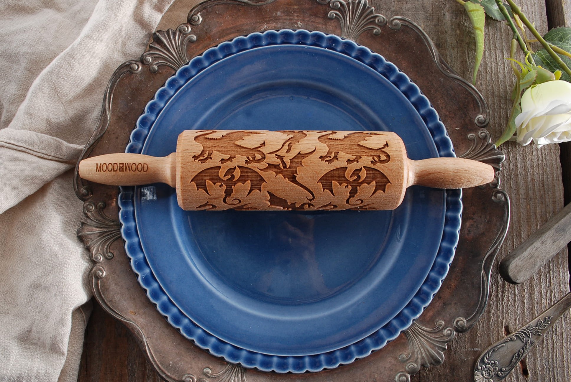 Each MoodForWood laser engraved rolling pin is made of beech wood. It has the optimal engraving depth to obtain the best extrusion results on dough and even clay. Each roller is covered with oil approved for direct contact with food. It protects the wood and makes it easier to apply patterns, because the dough does not stick so easily to the surface of the roller. At MoodForWood you can buy a rolling pin with a very good price-quality ratio. We also take care of short production times and the fastest and cheapest delivery. All of our rollers are approved for contact with food. To each purchased item we add our proven recipe for shortbread cookies with a pattern and useful roller care tips. The MoodForWood rolling pin is a perfect gift for: birthday, name day, Wedding, Mother's Day, Father's Day, and also for anyone interested in baking.