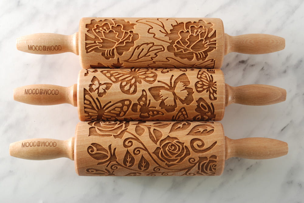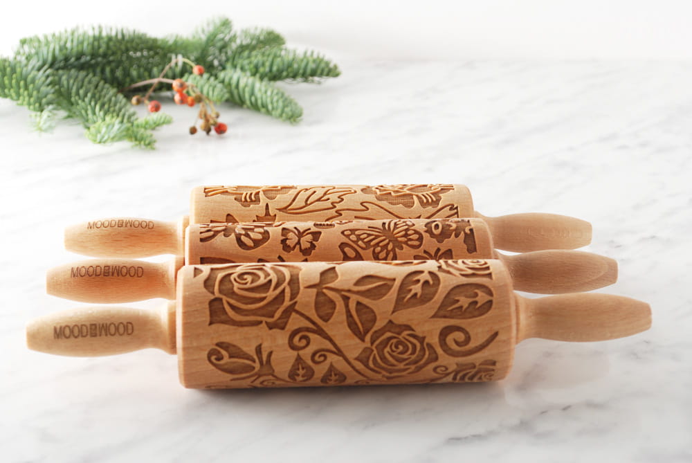 Each MoodForWood laser engraved rolling pin is made of beech wood. It has the optimal engraving depth to obtain the best extrusion results on dough and even clay. Each roller is covered with oil approved for direct contact with food. It protects the wood and makes it easier to apply patterns, because the dough does not stick so easily to the surface of the roller. At MoodForWood you can buy a rolling pin with a very good price-quality ratio. We also take care of short production times and the fastest and cheapest delivery. All of our rollers are approved for contact with food. To each purchased item we add our proven recipe for shortbread cookies with a pattern and useful roller care tips. The MoodForWood rolling pin is a perfect gift for: birthday, name day, Wedding, Mother's Day, Father's Day, and also for anyone interested in baking.