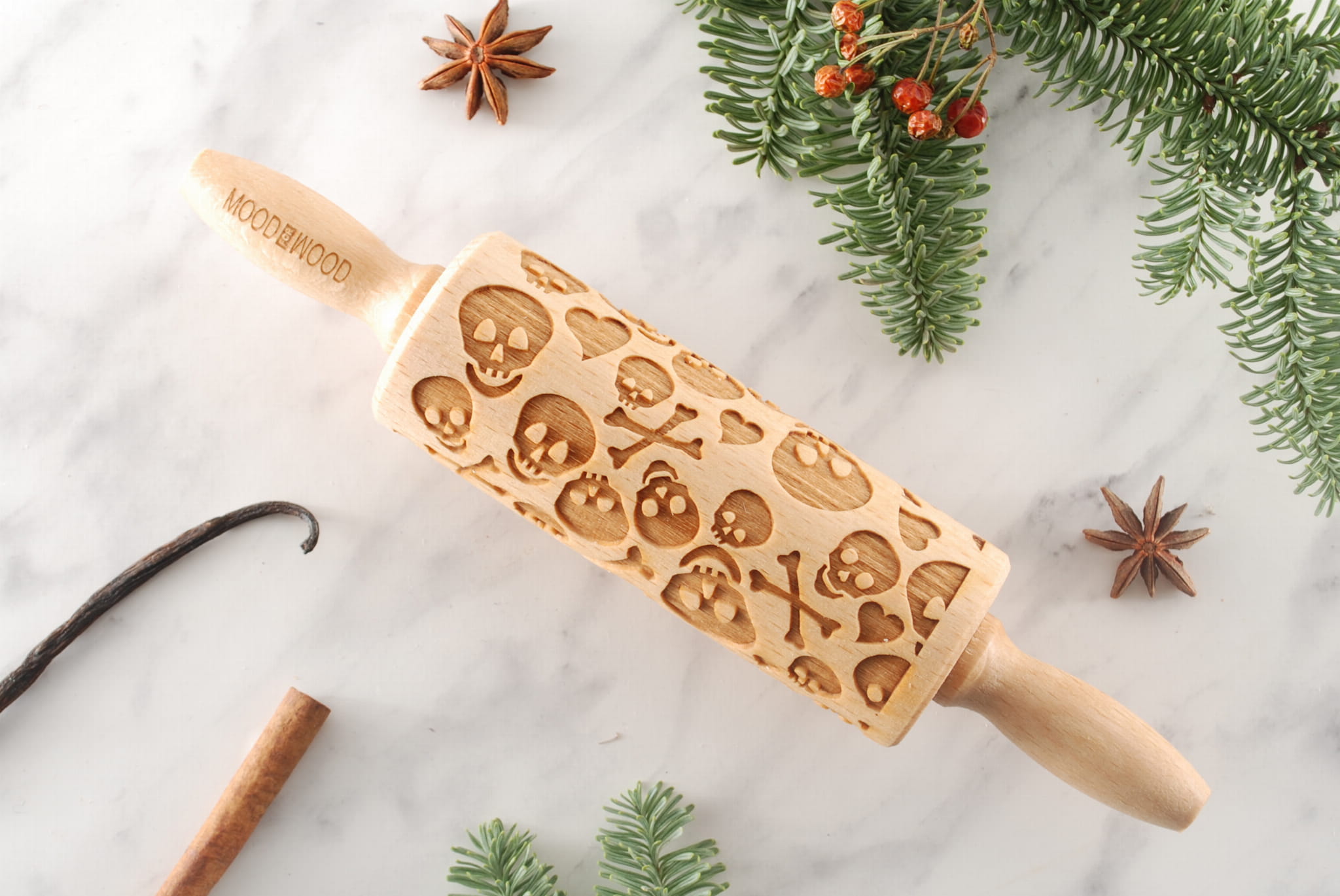 SKULLS & BONES - MINI embossing rolling pin, perfect choice for Halloween