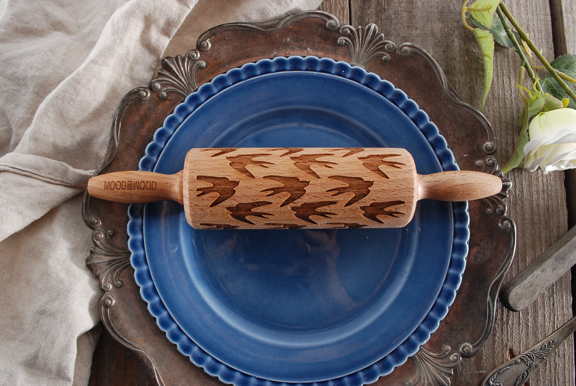 Each MoodForWood laser engraved rolling pin is made of beech wood. It has the optimal engraving depth to obtain the best extrusion results on dough and even clay. Each roller is covered with oil approved for direct contact with food. It protects the wood and makes it easier to apply patterns, because the dough does not stick so easily to the surface of the roller. At MoodForWood you can buy a rolling pin with a very good price-quality ratio. We also take care of short production times and the fastest and cheapest delivery. All of our rollers are approved for contact with food. To each purchased item we add our proven recipe for shortbread cookies with a pattern and useful roller care tips. The MoodForWood rolling pin is a perfect gift for: birthday, name day, Wedding, Mother's Day, Father's Day, and also for anyone interested in baking.