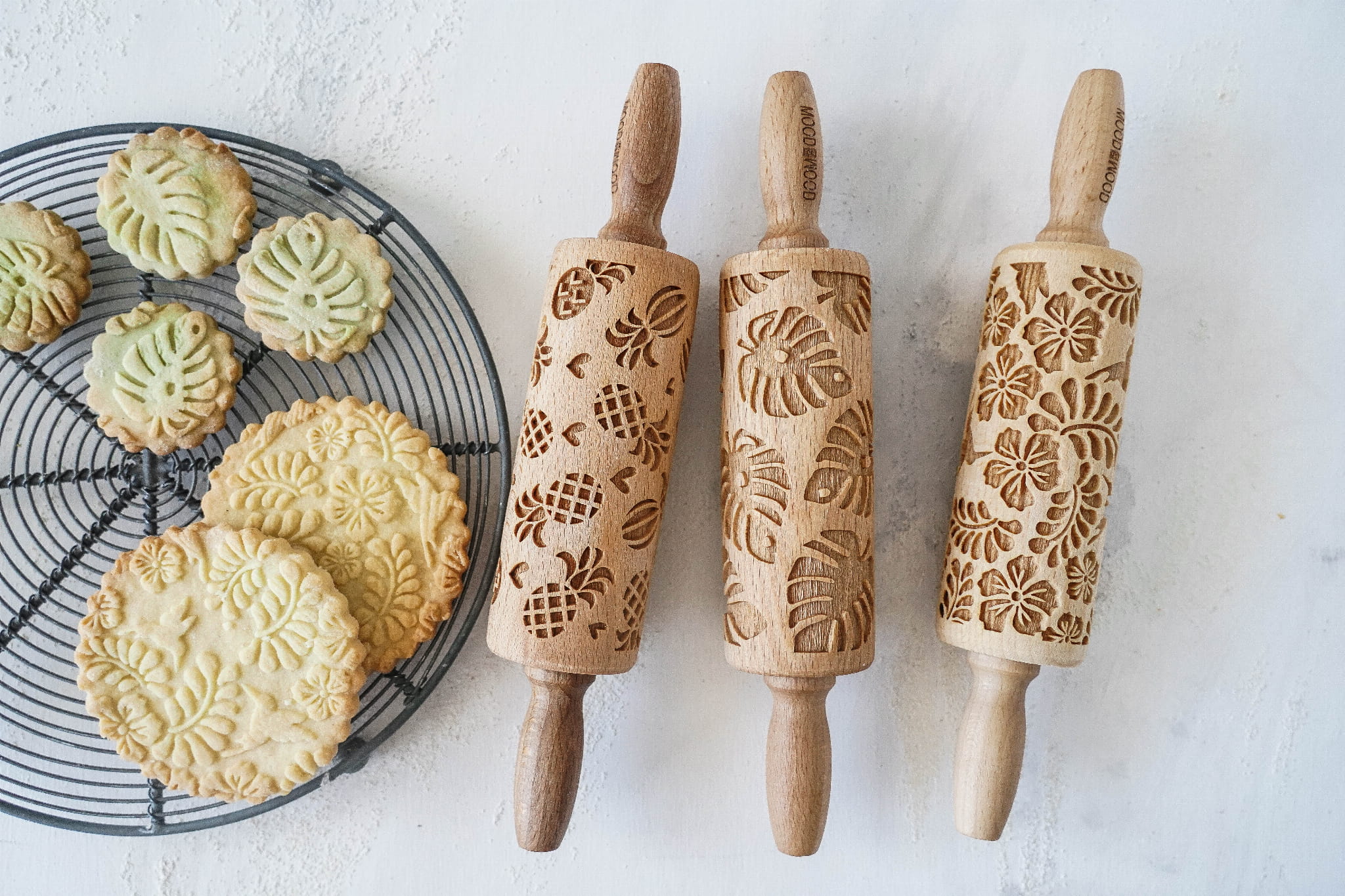 Zestaw 3 MINI wałków do ciasta. Każdy laserowo grawerowany wałek do ciasta MoodForWood wykonany jest z drewna bukowego. Ma optymalną głębokość grawerowania do uzyskania najlepszych wyników wytłaczania na cieście, a nawet glinie. Każdy wałek pokryty jest olejem dopuszczonym do bezpośredniego kontaktu z żywnością. Chroni on drewno i ułatwia nanoszenie wzorów, ponieważ ciasto nie przylega tak łatwo do powierzchni wałka. W MoodForWood kupisz wałek do ciasta z bardzo dobrym stosunkiem ceny do jakości. Dbamy także o krótkie terminy produkcji oraz o najszybszą i najtańszą dostawę. Wszystkie nasze wałki są dopuszczone do kontaktu z żywnością. Do każdego zakupionego przedmiotu dodajemy nasz sprawdzony przepis na kruche ciasteczka ze wzorem i przydatne wskazówki pielęgnacyjne wałka. Wałek do ciasta MoodForWood to doskonały prezent na: urodziny, imieniny, Ślub, Dzień Matki, Dzień Ojca, a także bez okazji dla każdej osoby zainteresowanej pieczeniem.