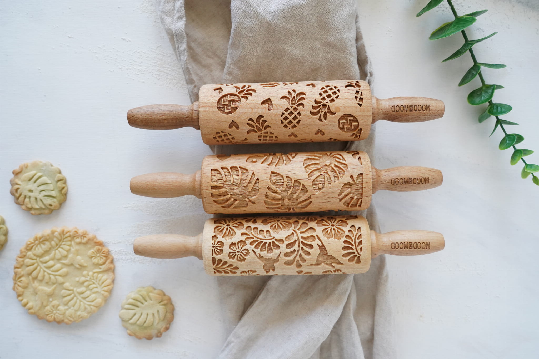 TROPICANA - zestaw 3 MINI grawerowanych wałków do ciasta, tropikalne wzory, modne motywy